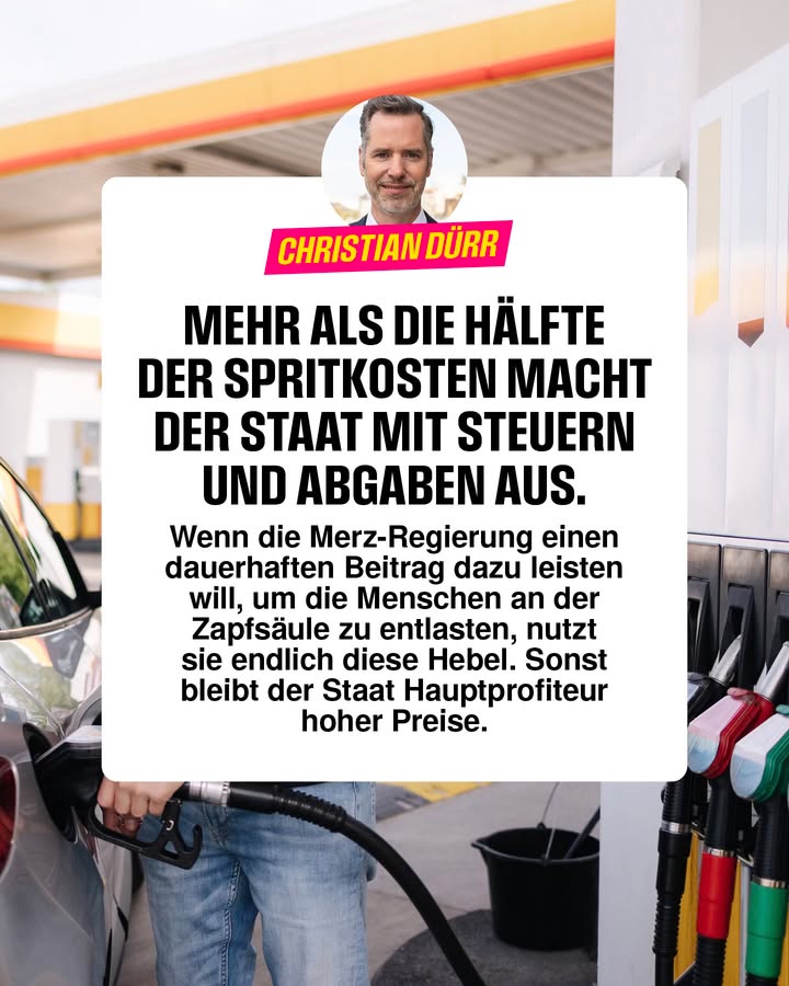 Die Bundesregierung hat angekündigt, die nationale Öl-Reserve teilweise freigeben und Spritpreiserhöhungen von Tankstellen nur einmal pro Tag erlauben zu wollen. Aber das ist keine dauerhafte Lösung, um Pendler zu entlasten. Denn mehr als 60 Prozent des Spritpreises werden in Deutschland durch Staat verursacht. Bei jeder Erhöhung verdient er unmittelbar mit. Hier muss die Bundesregierung ansetzen. Diese Steuern und Abgaben müssen dauerhaft reduziert oder gestrichen werden.